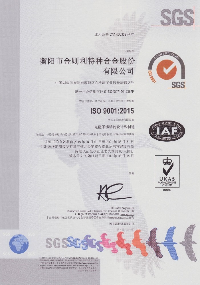 衡陽市金則利特種合金股份有限公司成立于一九九九年十二月,注冊資本人民幣兩千兩百萬元。注冊地址:衡陽市雁峰區(qū)白沙洲工業(yè)園長塘路2號。公司主營耐蝕軟磁合金,為湖南省高新技術(shù)企業(yè)。公司自成立以來,即致力于耐蝕軟磁合金的研發(fā)。 研制出的JL-31(00Cr13si2Pb)、JL-31B(00Cr13si2)、JL-31BS(00Cr13Si2S)、JL-37B(0Cr17Si2)、JL-37(0Cr17···
